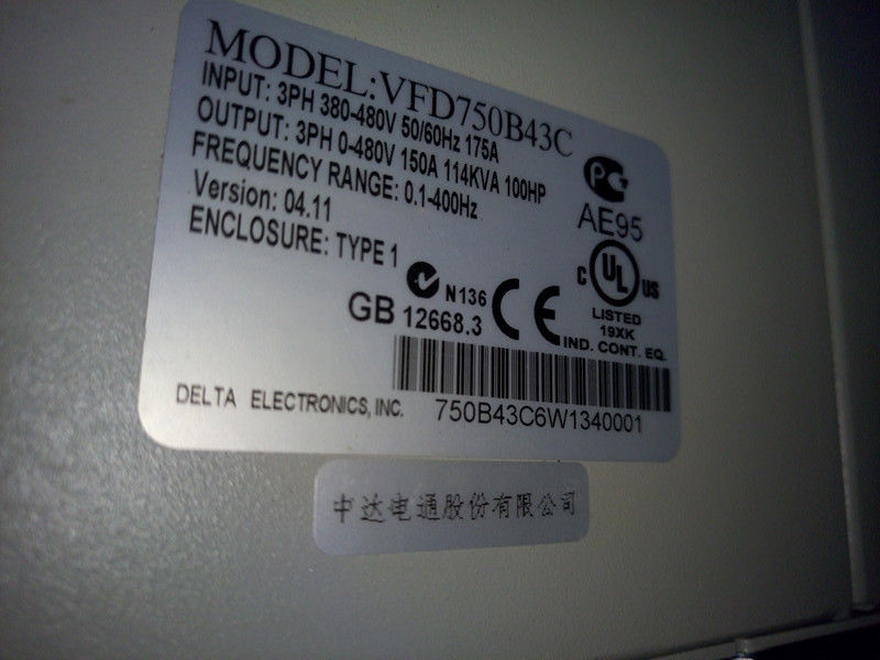 VFD750B43CDELTA VFD-B VFD-Frequenzumrichter 75kw 100PS 3 PHASE 380V 400HZAllgemeiner Vektortyp neu im Karton